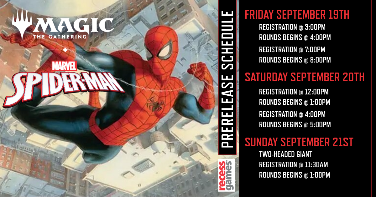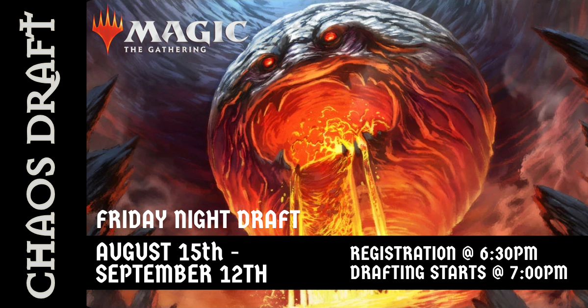 Recess GamesCOST: Based on packs purchased REGISTRATION: 6:00 PM DRAFTING BEGINS: 7:00 PM Embrace the chaos before Prerelease! Players will select 3 packs to bring into the draft and 2 for the prize pool. Packs for the draft must be Play Boosters and/or 15 card Draft Boosters. Prize packs may be ANY booster packs. Prizes will be selectedContinue reading "Friday Night Magic Chaos Draft"